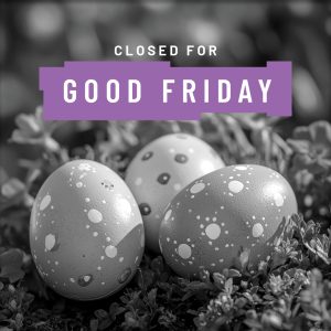 We’ll be closed for Good Friday in preparation for the Easter holiday, and we hope you and your family have a beautiful weekend.